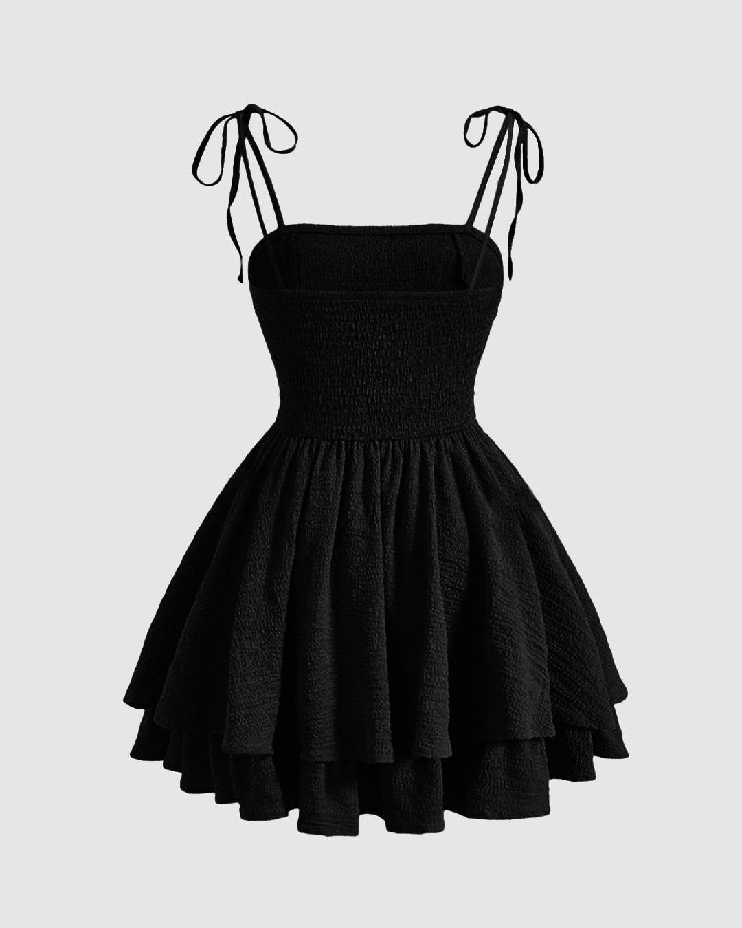 Tie Shoulder Layered Ruched Cami Dress In Black