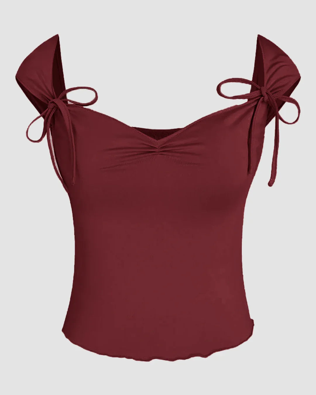 Party Sweetheart Neck Tie Strap Sleeveless Top in Maroon
