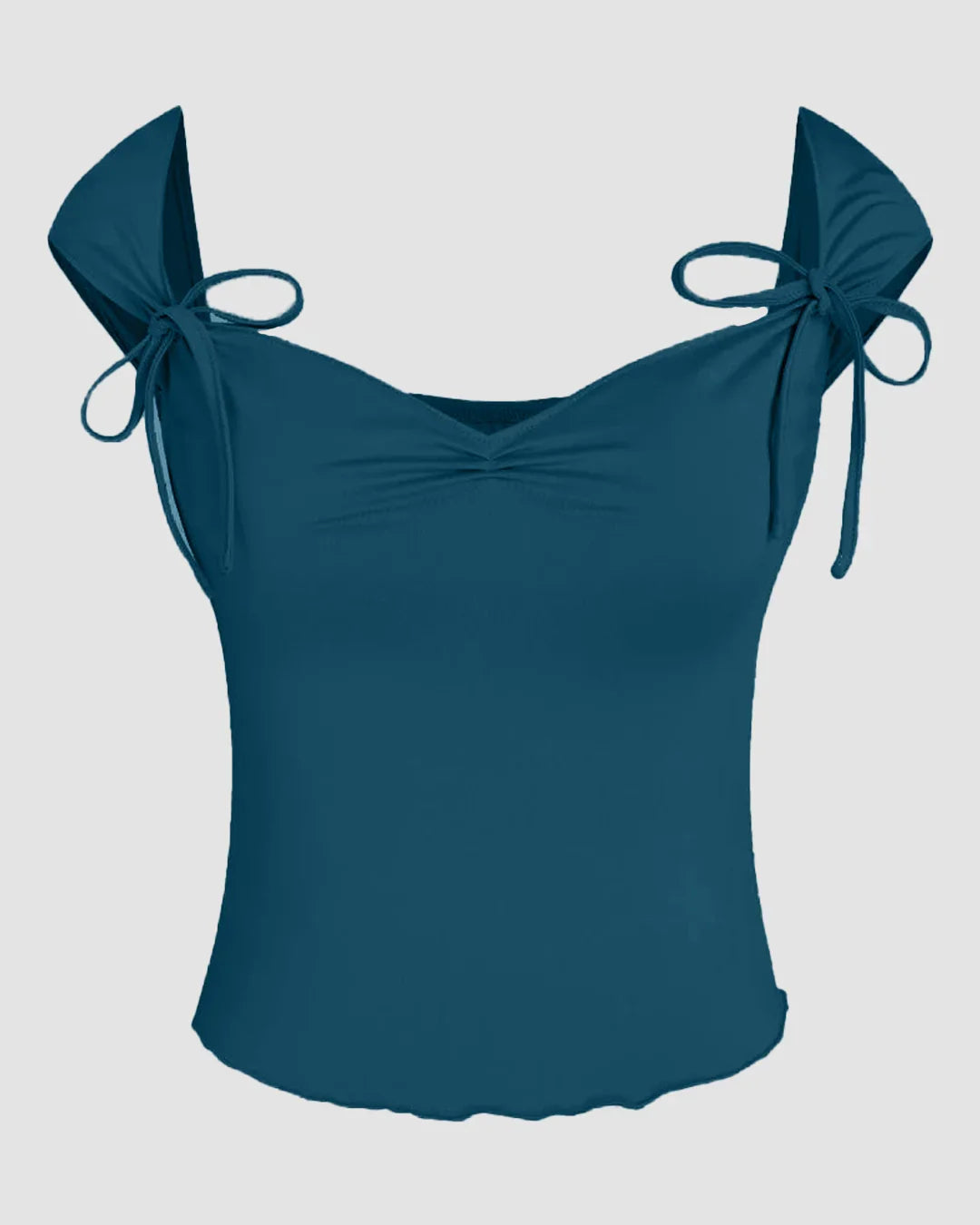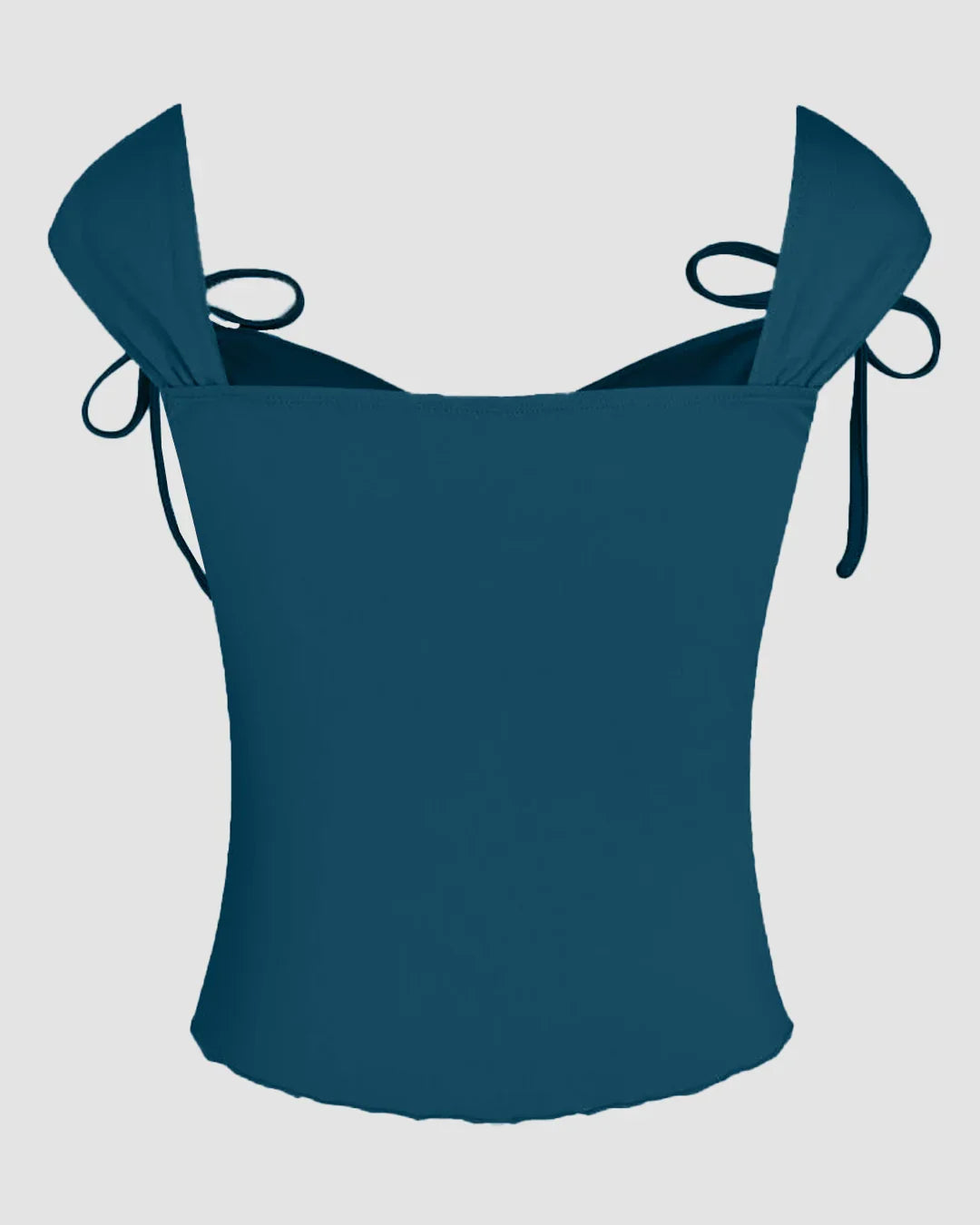 Tie Strap Sweetheart Neck Sleeveless Top in Teal Blue