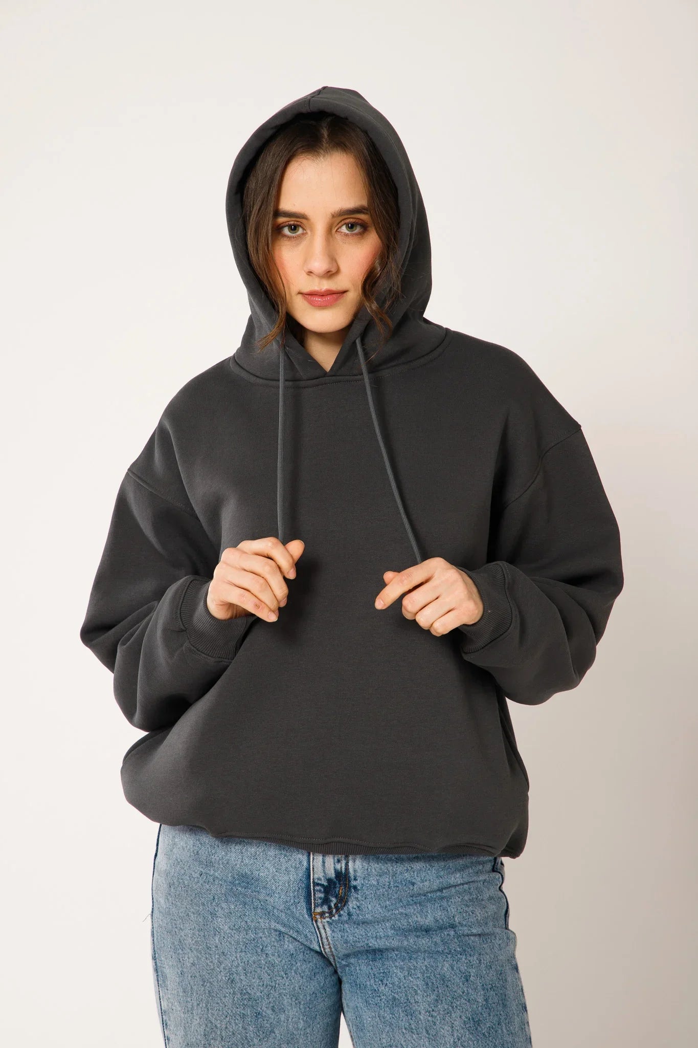 Womens Solid Drawstring Full Sleeve Hoodie in Grey is your go-to layer for laid-back days that still call for a clean, put-together look. Designed with a relaxed silhouette and adjustable drawstring detail, this hoodie blends everyday comfort with a minimal aesthetic that feels easy to style and easy to wear.
